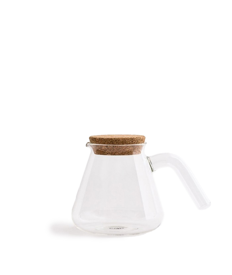 La brocca da servizio in vetro borosilicato viene fornito con un tappo di sughero. Con un design elegante e minimalista, il Server è realizzato a mano, risultando un oggetto funzionale per fare e servire il caffè allo stesso tempo.