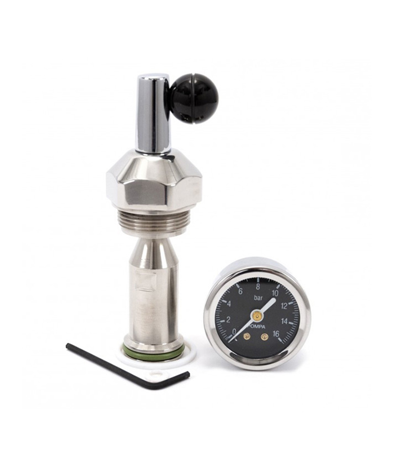 Il dispositivo di controllo del flusso è realizzato in acciaio inossidabile per resistere alla corrosione. I cambiamenti di pressione risultanti sono indicati da un manometro incluso da avvitare sulla parte anteriore del gruppo.