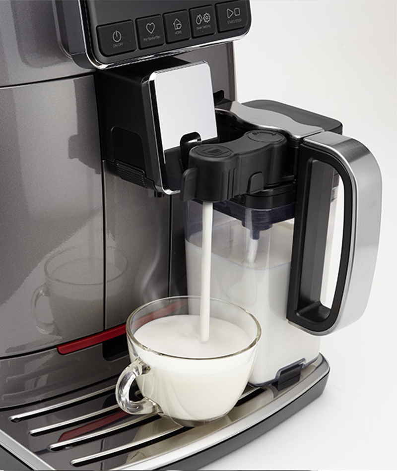 La caraffa latte integrata emulsiona il latte due volte e rimuove tutte le bolle per una schiuma perfetta, sempre alla giusta temperatura, in un solo click. Inoltre, può essere rimossa e riposta in frigo dopo l’uso, e pulita facilmente grazie al ciclo di pulizia automatico.