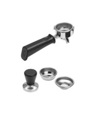 Portafiltro professionale in acciaio inox con tre filtri inclusi (due tradizionali e uno cieco).