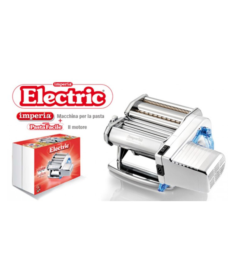 La confezione contiene la macchina Imperia per realizzare la sfoglia in 6 diversi spessori, la taglierina Imperia Duplex per 2 tipi di pasta, tagliatelle e fettuccine, il nuovo motore Imperia PastaFacile (con la nuova Staffa-guida). Imperia PastaFacile, montato ad innesto sulla macchina da pasta, consente di lavorare con entrambe le mani rendendo il lavoro più veloce e permettendo di ottenere una sfoglia omogenea, grazie alla costante velocità dei rulli.