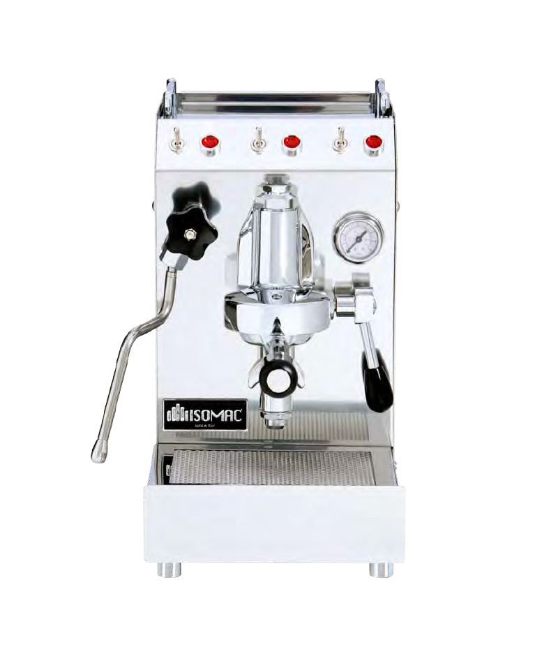 Macchina per caffè espresso e cappuccino di categoria “entry level” dotata di un rubinetto a doppia funzione per l’acqua calda e il vapore. Macchina per caffè espresso e cappuccino, costruita con i componenti delle macchine commerciali per bar.