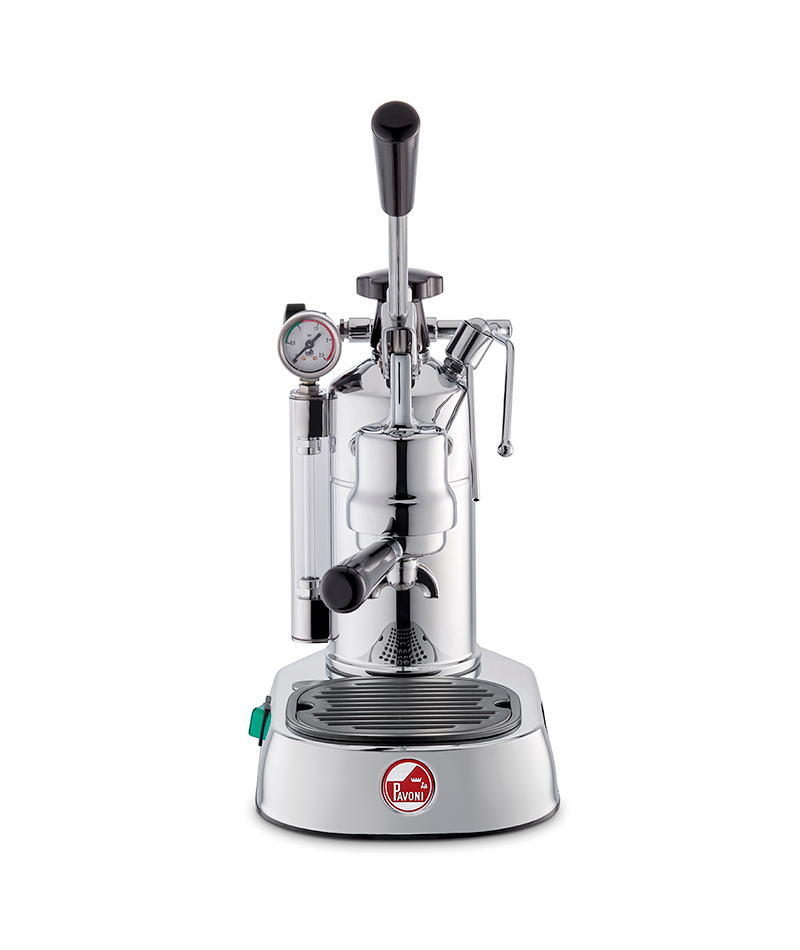 La Pavoni Professional Lusso PL. Eleganza, qualità, affidabilità sono racchiuse nel modello Professional dal 1974. Questa macchina dotata di manometro indicatore della pressione in caldaia garantisce una perfetta erogazione del caffè espresso e permette di ottenere cappuccini cremosi.
