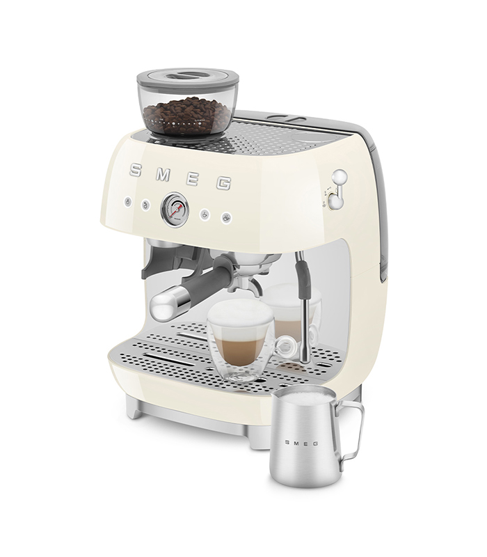 Smeg Macchina da Caffè Espresso Manuale con macinacaffè integrato 50’s Style – Panna LUCIDO – EGF03CREU