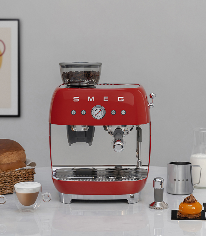 Smeg Macchina da Caffè Espresso Manuale con macinacaffè integrato 50’s Style – Rosso LUCIDO – EGF03RDEU