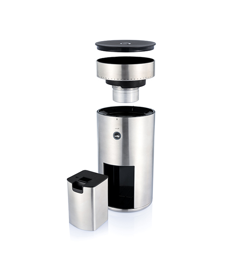 • Facile da pulire. Il contenitore in acciaio inox antistatico è incluso e riduce la polvere di caffè. Piccola spazzola inclusa.