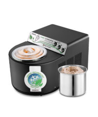 Gelatissimo Exclusive i-Green si presenta in veste ecosostenibile utilizzando un gas ecologico R290 con GWP = 3 che significa ridurre l’impatto sulle emissioni del 99,95%. Gelatissimo Exclusive i-Green consuma meno energia elettrica ed è più efficiente. Con Gelatissimo Exclusive i-Green scopri il modo più facile per preparare velocemente deliziosi gelati, sorbetti, granite e yogurt gelato! In soli 15/20 minuti gusterete un ottimo prodotto! Il pannello frontale di controllo in acciaio è stato disegnato da un designer internazionale per riflettere l’aspetto fresco ed ecologico della versione I-Green, Sul pannello sono posizionati tre tasti cromati, uno per l’interruttore generale, uno comanda l’impianto termodinamico, l’altro la pala di mantecazione. Il compressore è dotato di un dispositivo di protezione che ne evita il danneggiamento Il rapporto qualità prezzo di questa macchina è particolarmente vantaggioso, tanto da essere il best seller della gamma di macchine Nemox in molti Paesi. Gelatissimo Exclusive i-Green prepara fino a 1 kg. (1,5 litri) di gelato, sorbetto, yogurt gelato, in 15/20 minuti (10-20 porzioni).