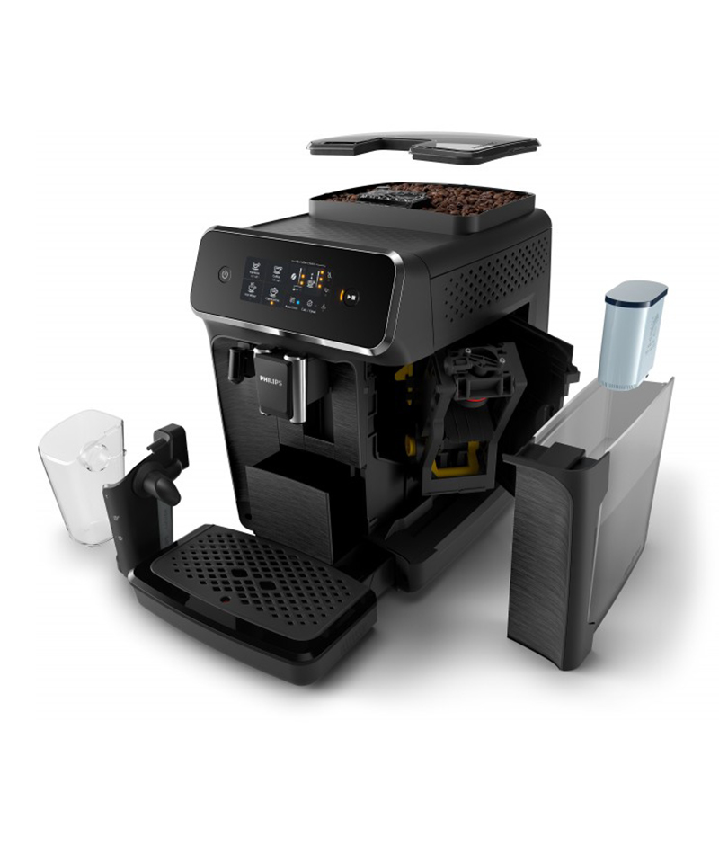 Macchina da caffè completamente automatica Philips Series 2200 EP2230/10, 3 bevande, Latte GO, Nero opaco, Touch Display.