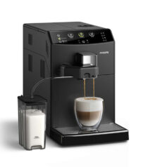 Grazie a Philips Easy Cappuccino serie 3000, il tuo cappuccino preferito è pronto con un solo tocco. Grazie alle sue capacità elevate in un design compatto, potrai gustare il caffè espresso o lungo fatto con chicchi appena macinati premendo un solo pulsante.