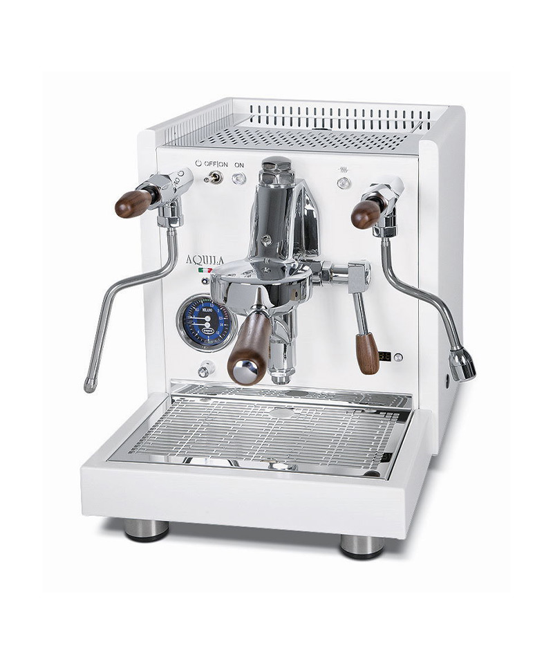 Il display OLED permette di regolare facilmente la temperatura, programmare la pre-infusione e attivare le modalità stand-by ed eco-mode. Aquila include un manometro a doppia scala, rubinetti a levetta.