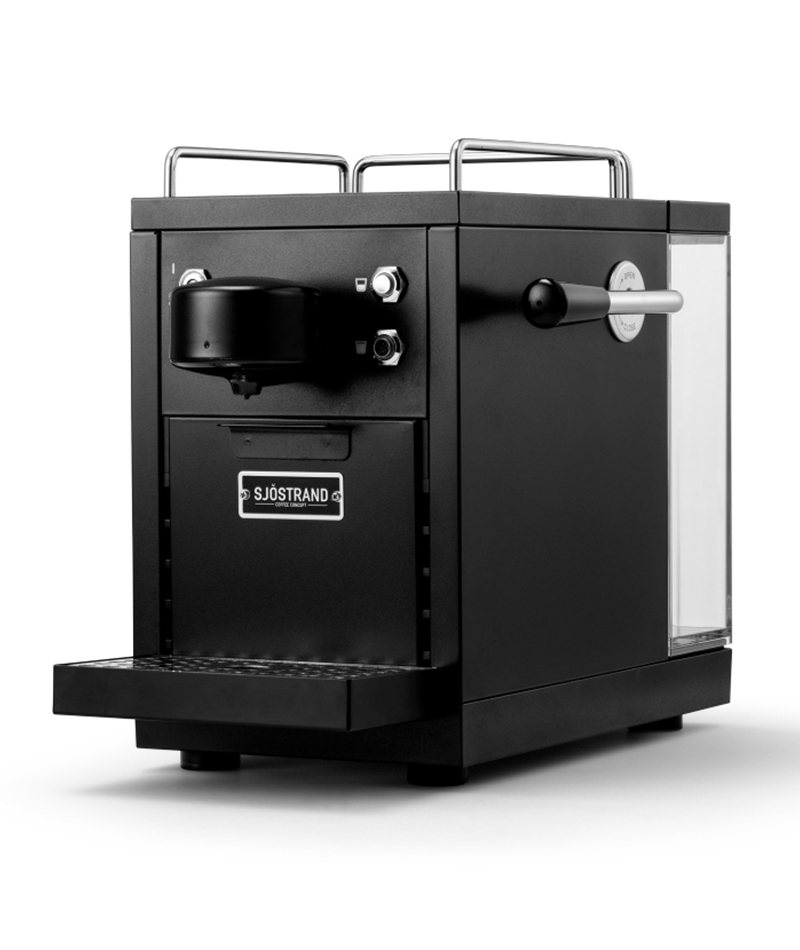 La Sjöstrand Original è una elegante macchina per capsule di caffè compatibile con Nespresso® con un corpo in acciaio inossidabile di alta qualità, un design minimalista di ispirazione scandinava e una finitura cromata lucida.