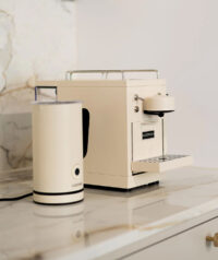 Rendi speciale il tuo rituale del caffè con la macchina per espresso Sjöstrand The Original e il Montalatte: un duo che fonde design scandinavo minimalista con funzionalità di alto livello. Con finiture in cromo lucido e beige opaco, trasformano il piano cucina in una vera postazione da barista.