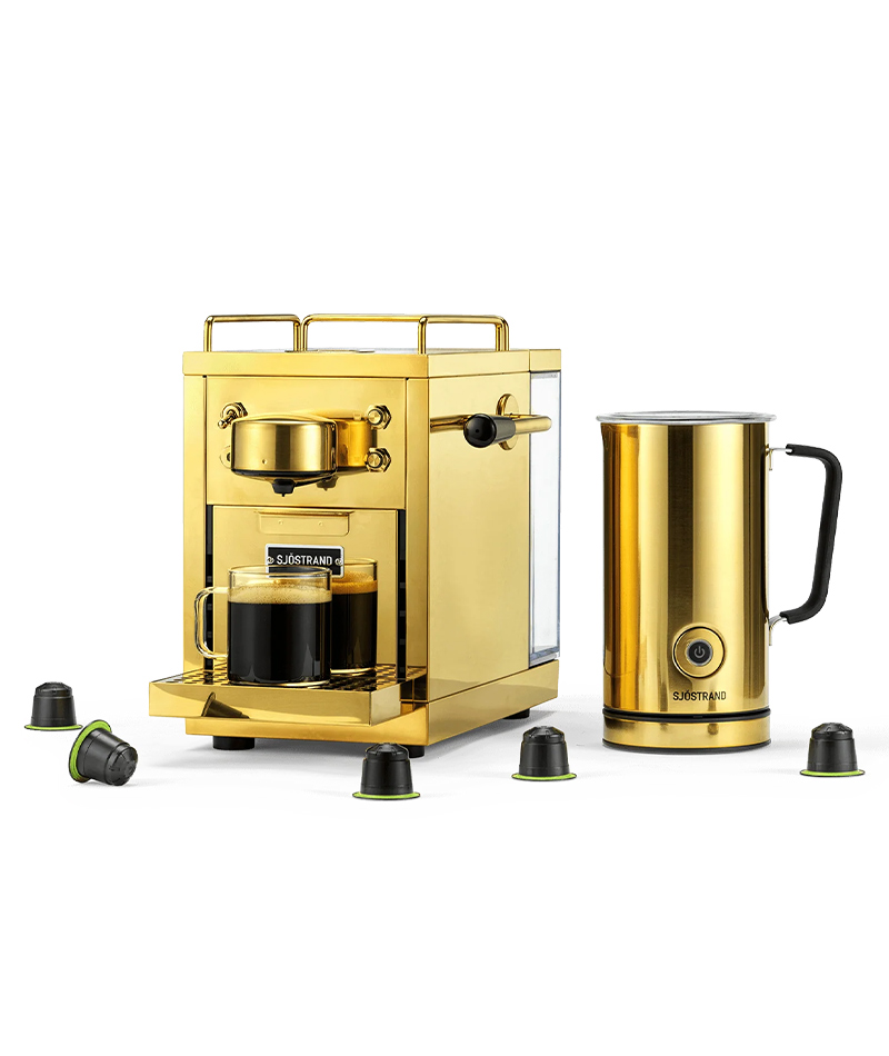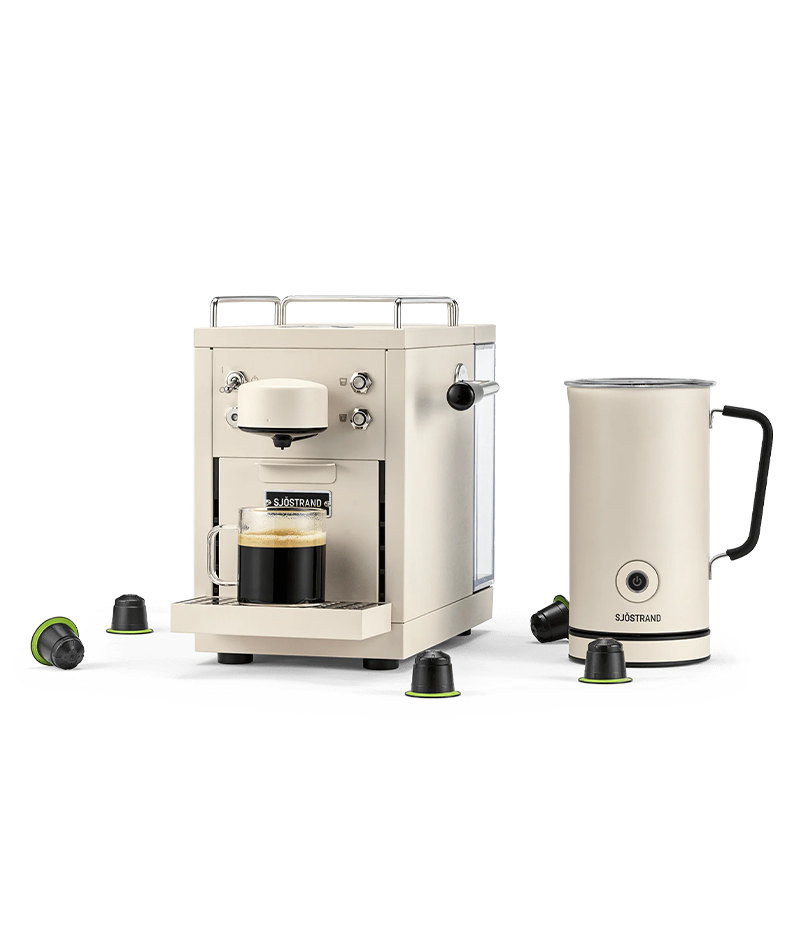 Rendi speciale il tuo rituale del caffè con la macchina per espresso Sjöstrand The Original e il Montalatte: un duo che fonde design scandinavo minimalista con funzionalità di alto livello. Con finiture in cromo lucido e beige opaco, trasformano il piano cucina in una vera postazione da barista.