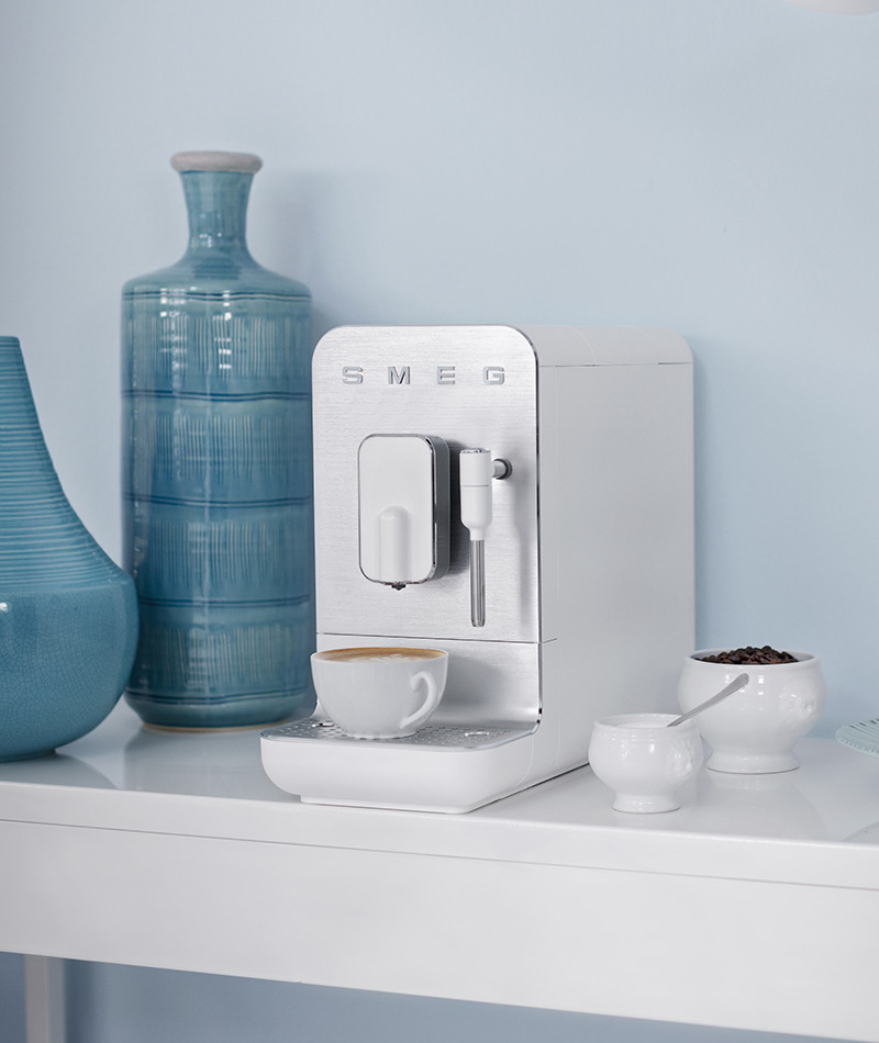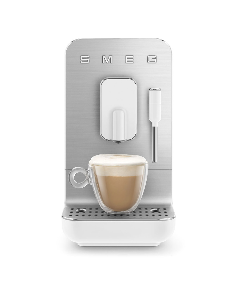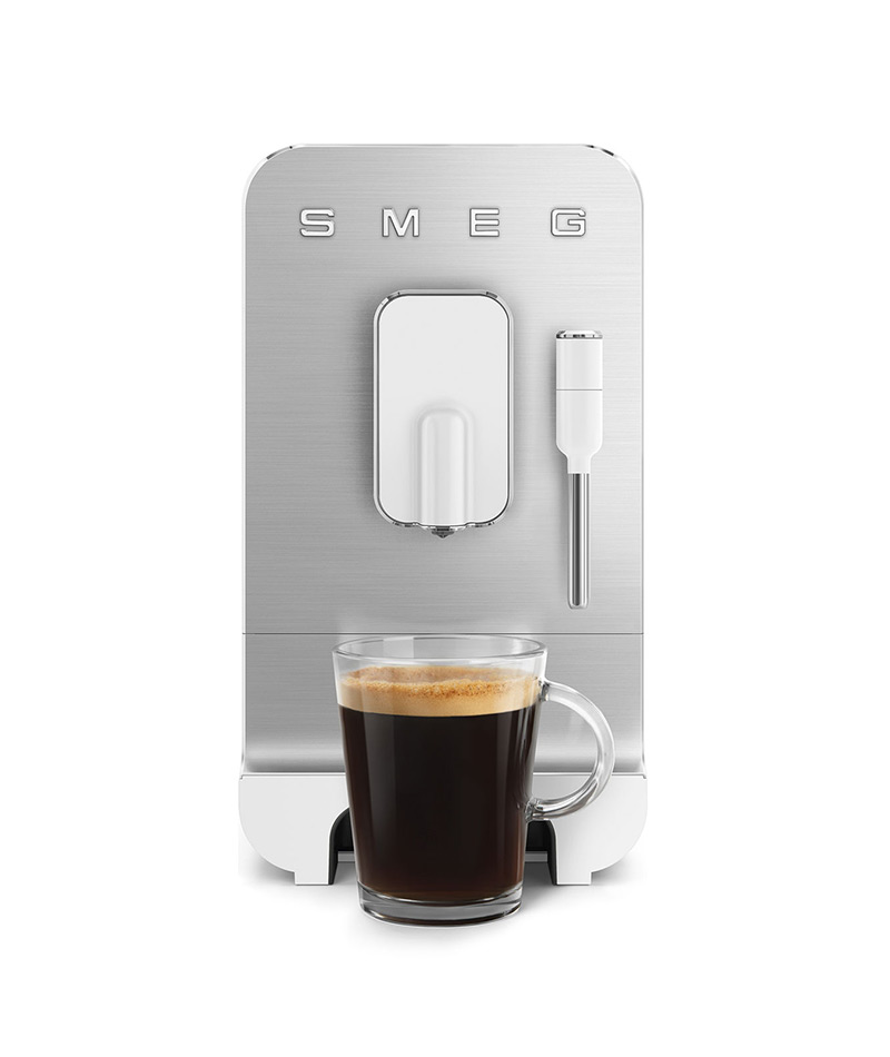 La Macchina da Caffè espresso automatica Smeg BCC12WHMEU è ideale per tutti gli amanti dell’aroma di un caffè fresco appena macinato. Dal formato incredibilmente compatto, queste macchine da caffè automatiche si distinguono per un design elegante caratterizzato da linee morbide e profili lucidi in contrasto con il pannello frontale in alluminio spazzolato.