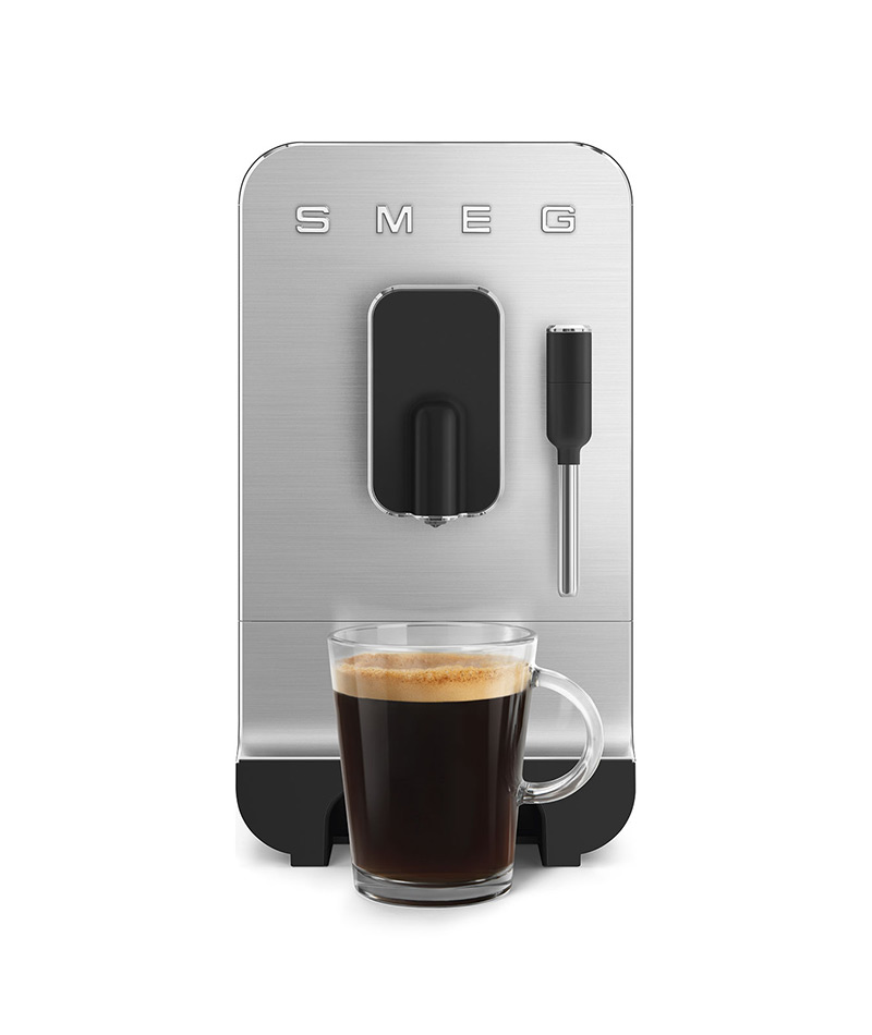 La Macchina da Caffè espresso automatica Smeg BCC12BLMEU è ideale per tutti gli amanti dell’aroma di un caffè fresco appena macinato. Dal formato incredibilmente compatto, queste macchine da caffè automatiche si distinguono per un design elegante caratterizzato da linee morbide e profili lucidi in contrasto con il pannello frontale in alluminio spazzolato.