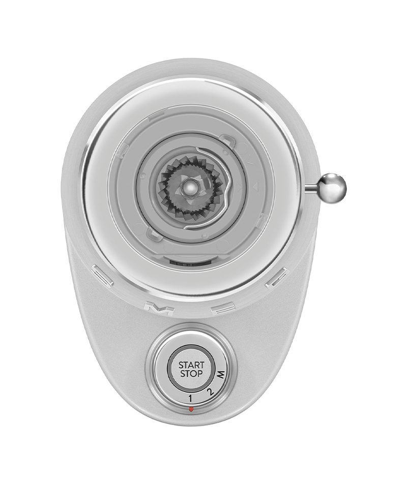 Qualità professionale. Il macinacaffè CGF02 è dotato di una macina conica in acciaio inossidabile con macina superiore rimovibile, un contenitore per caffè in grani da 240 g in Tritan™ Renew* con coperchio sigillato, un supporto portafiltro universale e una piastra magnetica rimovibile, entrambi in acciaio inossidabile.