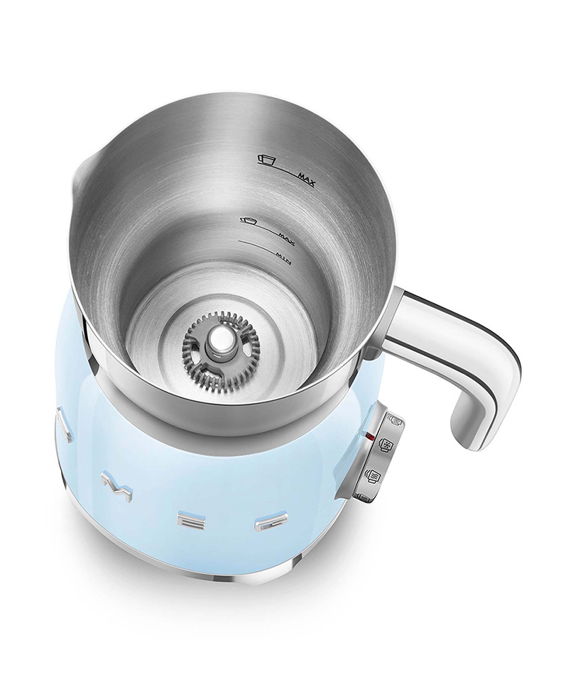 Il montalatte MFF11 Smeg è il desiderio realizzato di chi ama iniziare la giornata con morbidezza. Poter gustare un latte macchiato corposo, un mocaccino o una cioccolata calda comodamente nella propria cucina grazie all’aiuto di questo prezioso elettrodomestico di design, facile da usare.