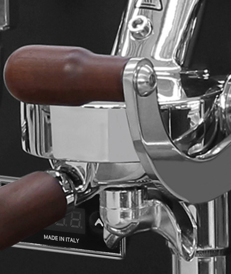 Il gruppo E61 con circolazione termosifonica e la leva di erogazione Ergo-Lift migliorano la stabilità della temperatura e la costanza dell’estrazione. La macchina è dotata di doppi rubinetti per vapore freddo e acqua calda azionati da joystick, un doppio manometro per il monitoraggio della caldaia e della pompa e una gestione elettronica del livello dell’acqua per un funzionamento di precisione.
