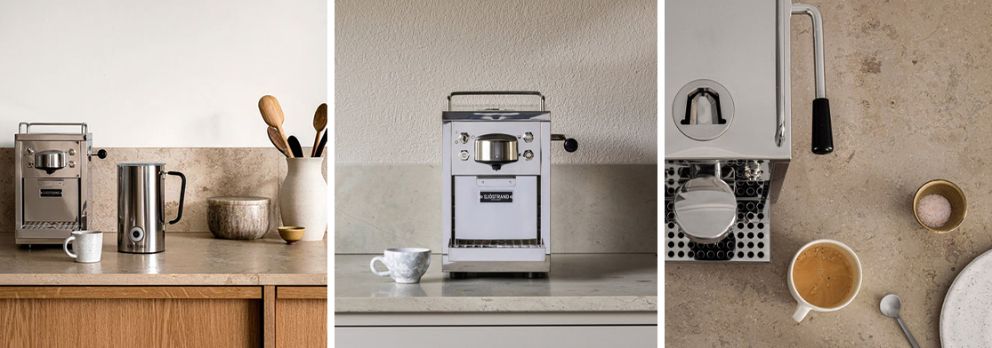 Il punto di partenza di Sjöstrand non è stato solo il caffè, ma il design. Il fondatore, appassionato dell’estetica nordica e del rituale quotidiano dell’espresso, si è reso conto che molte macchine da caffè a capsule mal si adattavano a cucine curate, ordinate, pensate nei minimi dettagli. Da qui l’idea: creare un oggetto che fosse bello da vedere, pratico da usare e armonioso da inserire in qualsiasi ambiente.